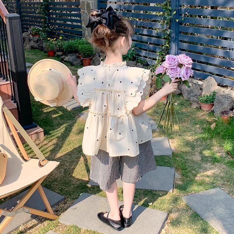 トップス ハーフパンツ 2点セット ウンドネック ノースリーブ 子供服 可愛い 女の子 110-160cm