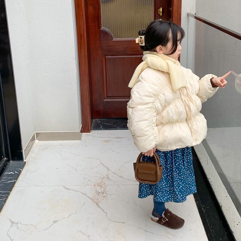 秋冬の新作子供服、可愛さと暖かさを兼ね備えたキッズコートです。柔らかな素材で作られたこのアウターは、おしゃれなデザインと機能性を兼ね備えています。可愛らしい襟巻きも付いているので、トレンディな女の子のおしゃれを演出できます。寒い季節にぴったりのアイテムで、子供たちの動きを制限せず、暖かさやコーディネートのアクセントになります。