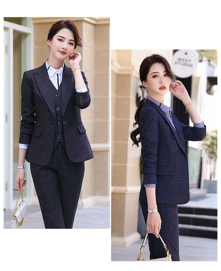 レディース スーツセット。こちらはオフィスやビジネスシーンで活躍する上品な2点セットです。