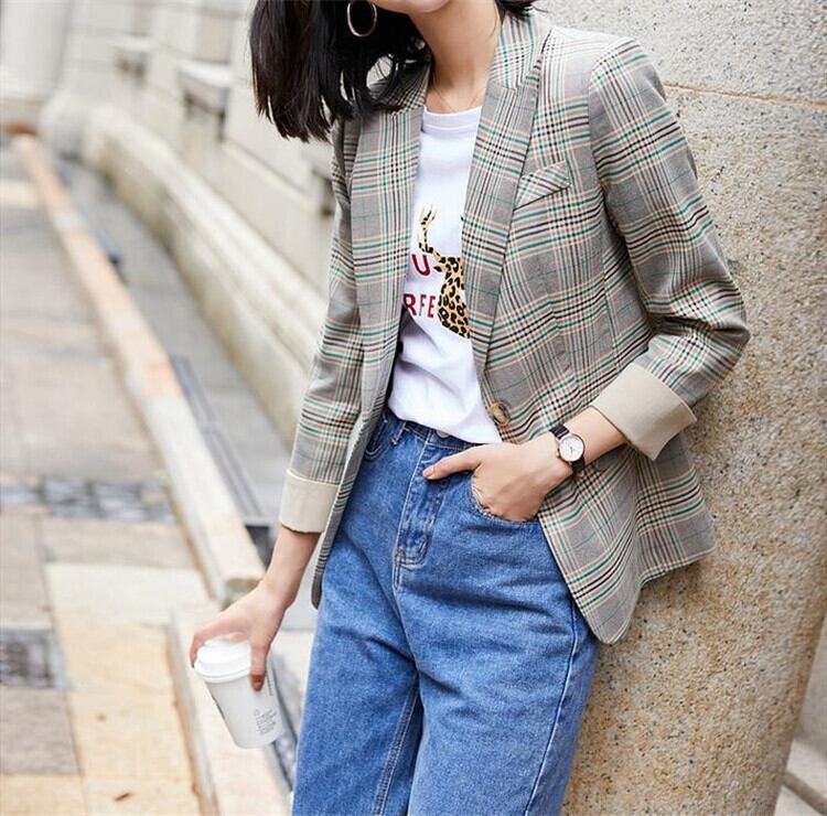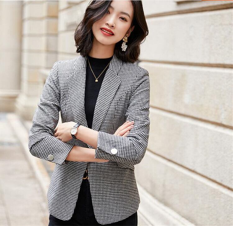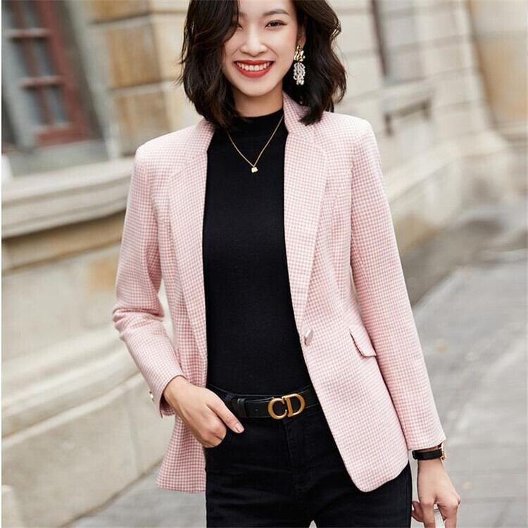 韓国ファッション チェック柄 スモールスーツショートスタイル コート百掛け スリム チェック スーツ